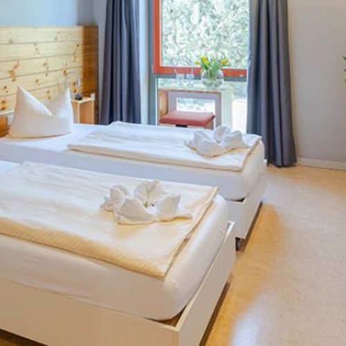 Die gemütlichen Einzel-, Doppel- und Vierbettzimmer sind komplett barrierefrei eingerichtet. So können wir auch den Gästen mit verschiedenen Einschränkungen einen selbstbestimmten und angenehmen Aufenthalt ermöglichen.